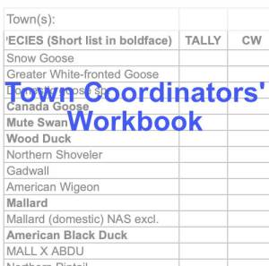 The Town Sector Coordinators’ Workbook is a unitary file. In the Excel document the comprehensive species, effort, and participation sections are tabbed. Please do not use any previous taxonomies.